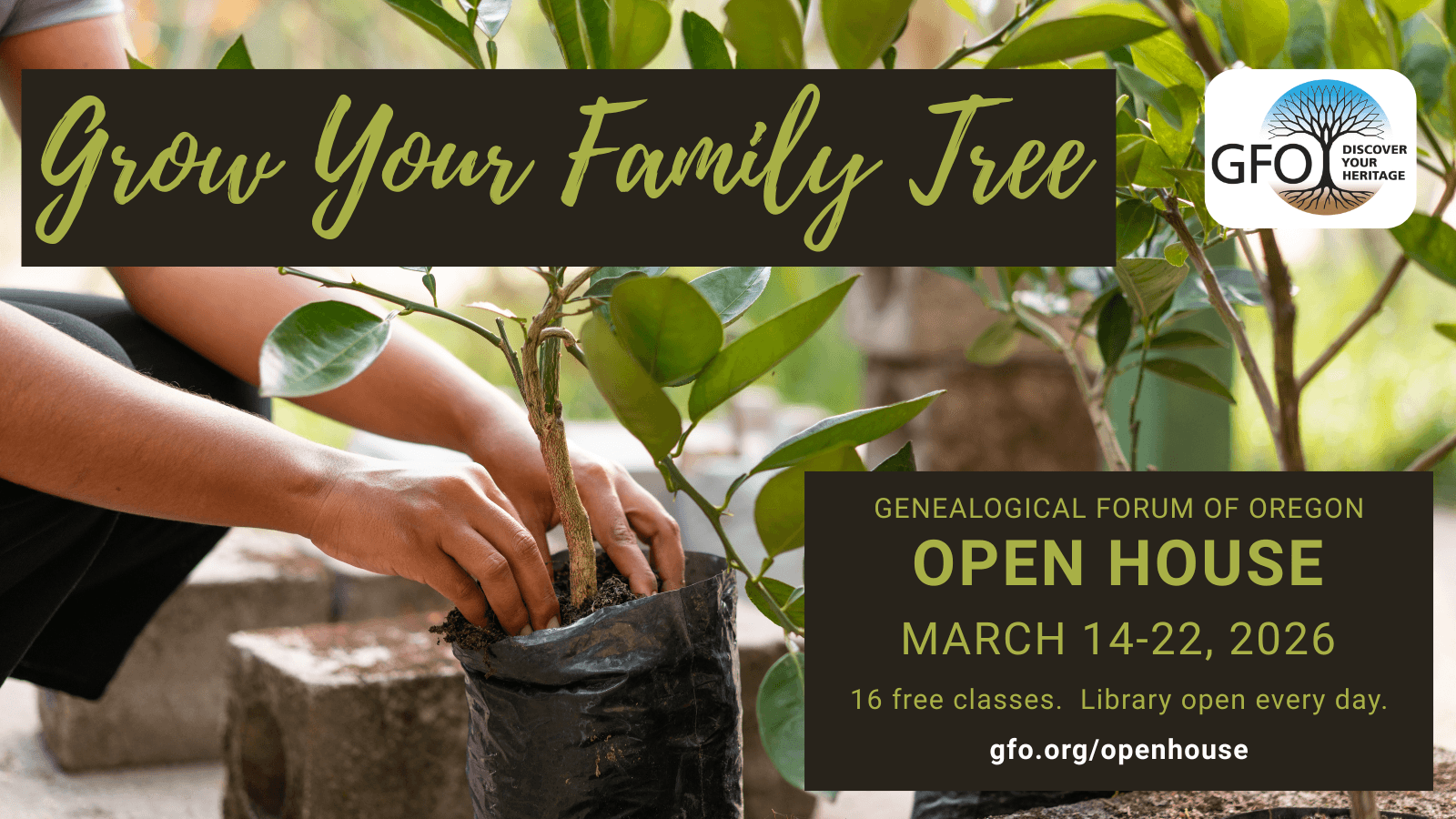Need help getting started, or you have gotten stuck in just the first three generations? Sign up for a one-hour consultation to get started. Offered every day during Open House. Contact info@gfo.org to schedule your appointment. (Also check our beginniners class, below)