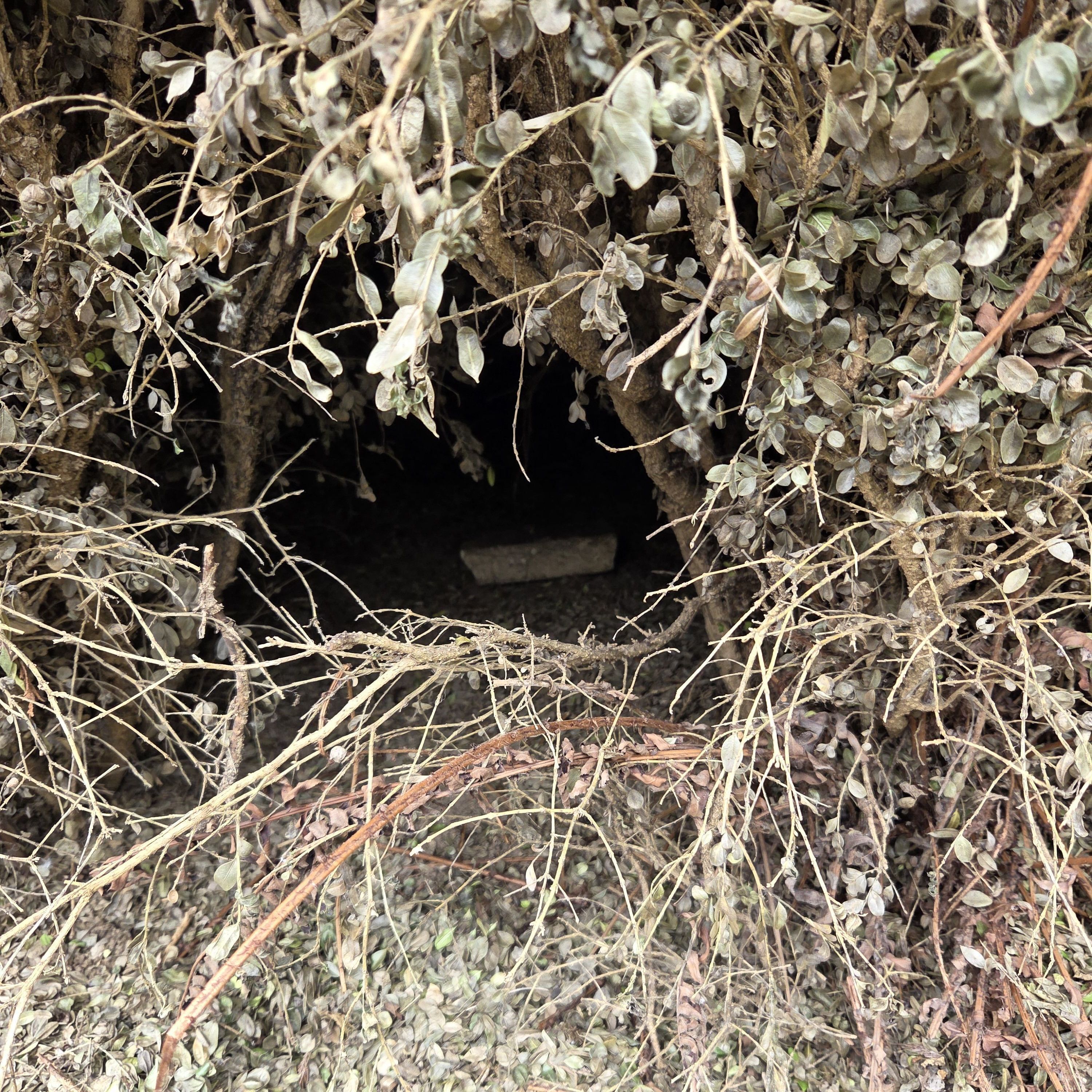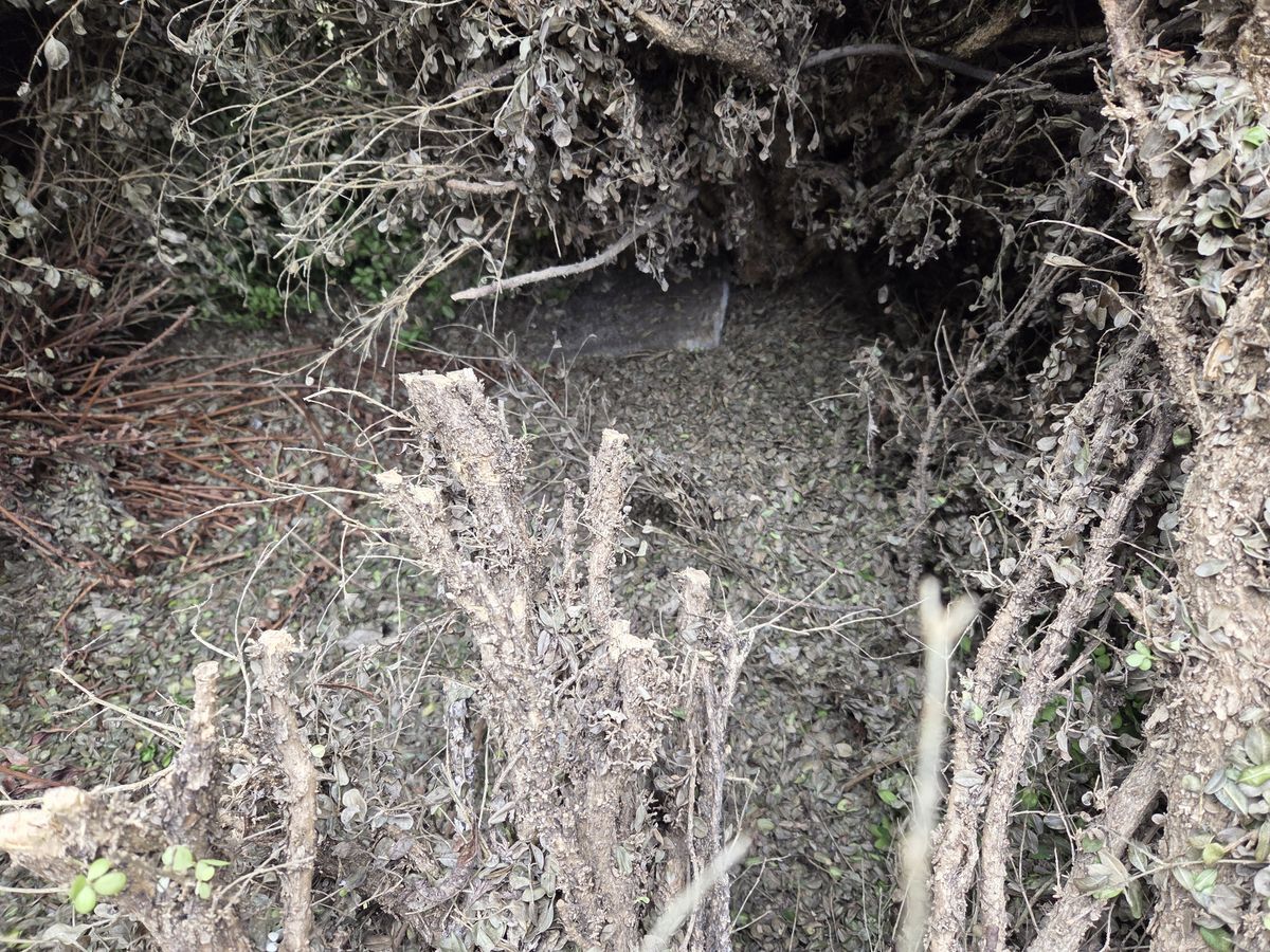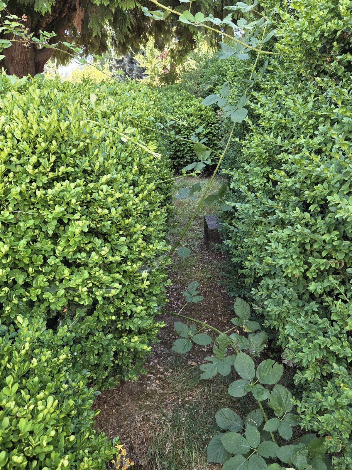 Many years ago, in an area filled with primarily baby burials, nearly 100 little boxwoods were planted in rows between the rows of baby burials. Over the years, they turned into an overgrown thicket laced with blackberry vines.