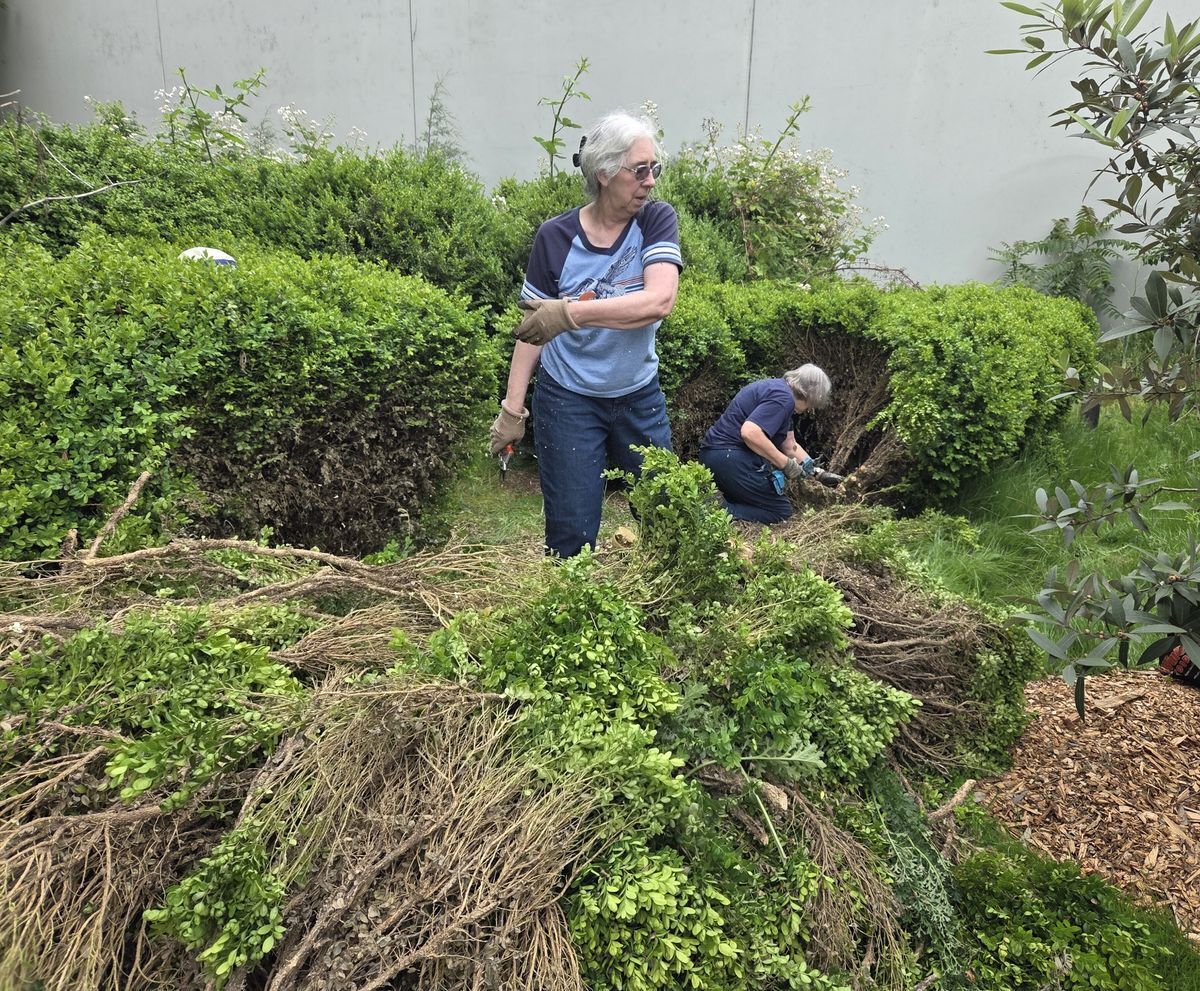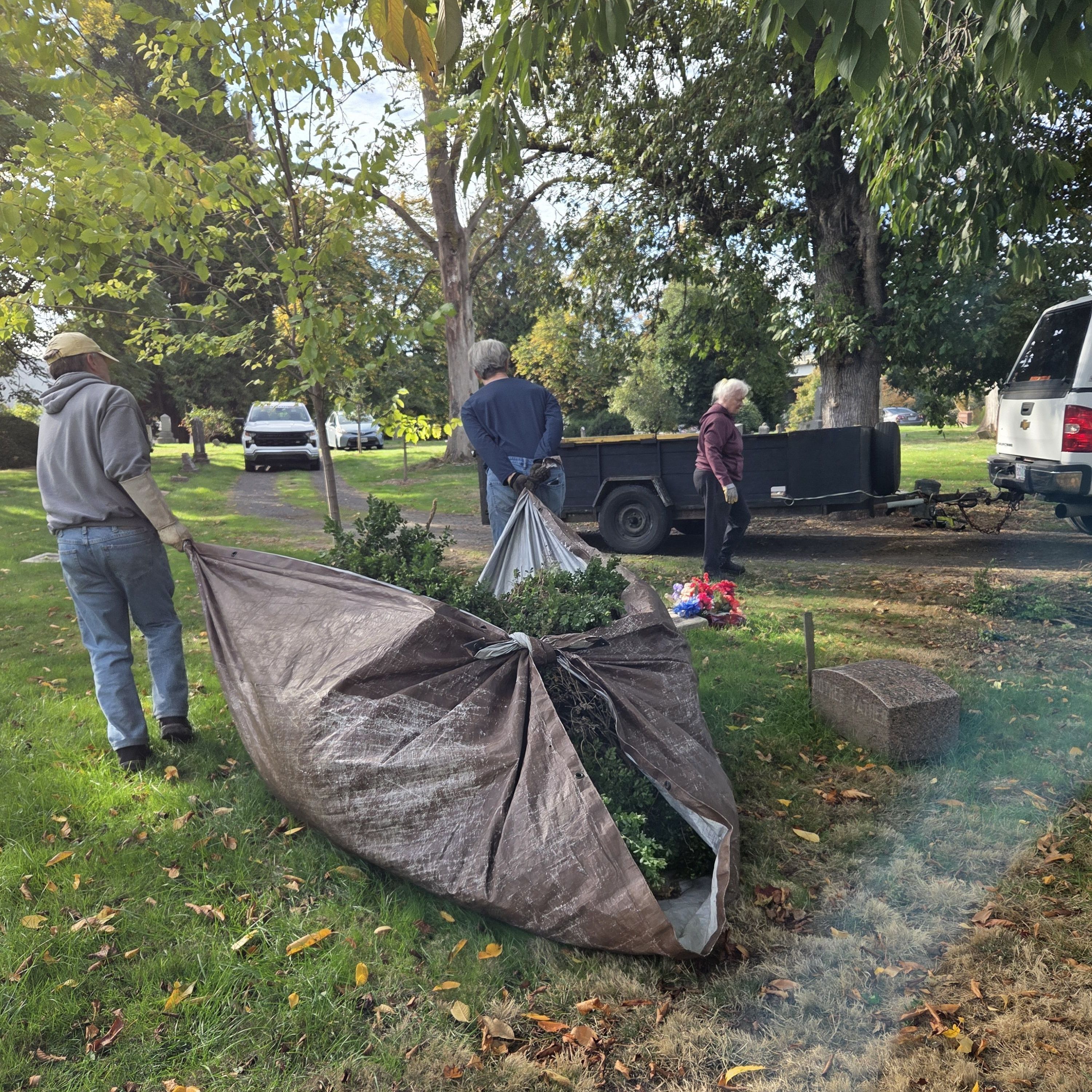 In 2024 and 2025, GFO volunteers toiled at the Historic Columbian Cemetery (HCC) to cut down and haul away an overgrown hedge.